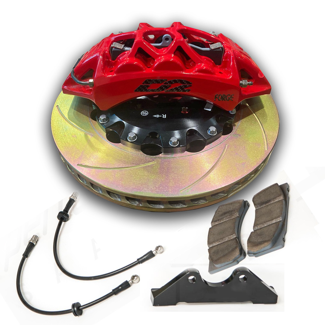 D2 brake kits provide you with serious braking power when you need it most. D2 calipers are precision machined from aircraft quality billet aluminium and feature heavy duty aliminium pistons mated to temperature resistant seals. These high performance calipers are able to utilize a lightweight construction while providing dramatically increased braking performance. The rotors included in the D2 brake kits feature a two-piece design and slotted surfaces which help minimise fade and dissipate heat under the most extreme brake conditions.
